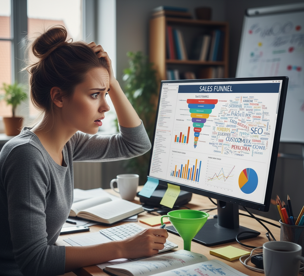 Pamiętam ten dzień jak dziś. Klient, z którym współpracowałam od miesięcy, rzucił podczas spotkania: „Sprawdźmy nasz lejek sprzedażowy. Czy możesz przeanalizować, gdzie tracimy leady?”. Siedziałam przed ekranem, kiwając głową, ale w środku panika. Lejek? Jaki lejek? Ten do nalewania oliwy czy co? A persona klienta? Brzmiało to jak postać z gry komputerowej.